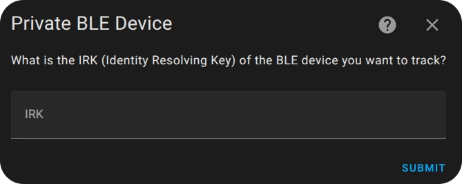Since everyone in my home uses Apple devices, I am using the Private BLE integration. Follow the instructions in the integration’s documentation to retrieve the Identity Resolving Key (IRK) for your devices.