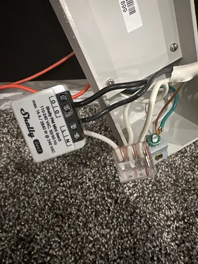 Any time I automate something that involves fire, I want a hard-wired way to shut it down. I added a simple toggle switch inline ahead of the Shelly. Flip it off and the Shelly can’t activate the fireplace, no matter what Home Assistant tries to do.