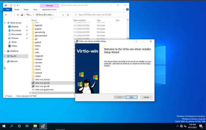 - Inside the VM, install the VirtIO drivers.