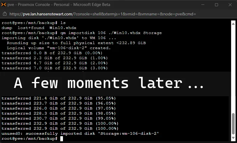 This whole conversion process is what planted the seed for this blog. I wrote the steps down in Obsidian in January 2023, two years before I launched the site. It feels good to finally publish them here, so the next person doesn’t have to burn days searching the way I did. Whether you’re a homelabber moving off Hyper-V or just trying to grab files off a failed machine, this process to convert a Hyper-V VHDX to Proxmox makes it possible.