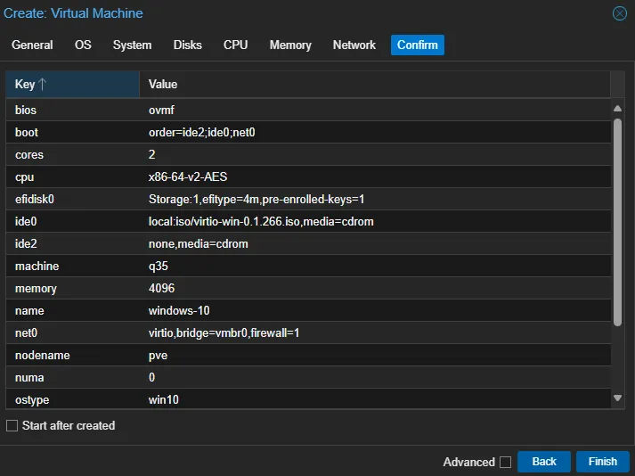 - Performance: VirtIO vs SATA makes a huge difference. Take the extra step to install drivers.